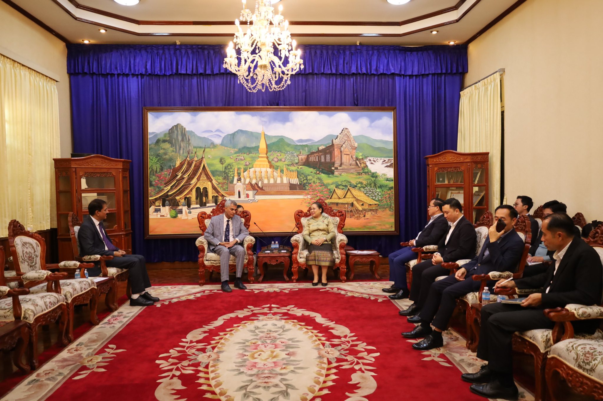 ທ່ານ ນາງ ສວນສະຫວັນ ວິຍະເກດ, ລັດຖະມົນຕີ ກະຊວງວັດທະນະທໍາ ແລະ ການທ່ອງທ່ຽວ ພ້ອມດ້ວຍຄະນະໄດ້ຕ້ອນຮັບການເຂົ້າຢ້ຽມຂໍ່ານັບຂອງທ່ານ ໂຢເກສ໌ວາ ຊັງວານ (Yogeshwar Sangwan) ເອກອັກຄະລັດຖະທູດວິສາມັນ ຜູ້ມີອຳນາດເຕັມ ແຫ່ງ ອິນເດຍ ປະຈຳ ສປປ ລາວ.